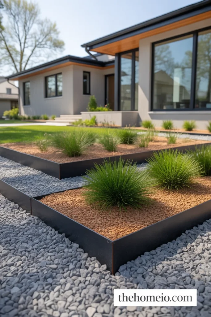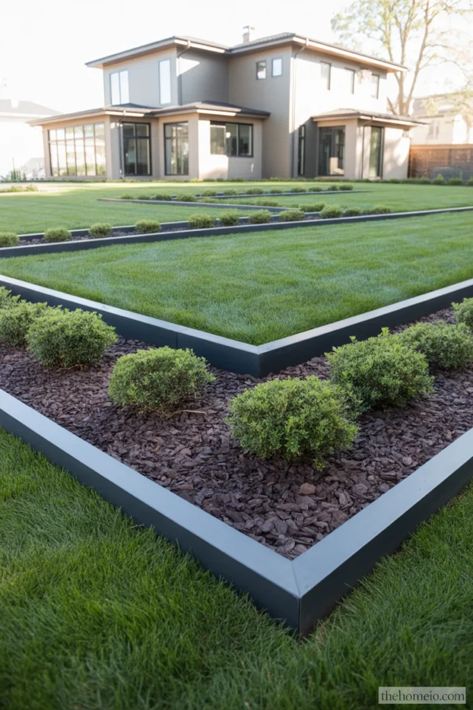 Nothing defines a modern landscape faster than clean, sharp edges. Black steel edging installed along every garden bed creates a crisp visual boundary between lawn and planting that instantly elevates the whole yard.