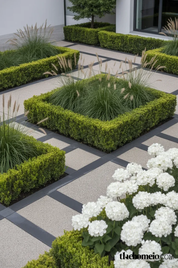 10. Create Geometric Planting Beds For Modern Front Yard Ideas
