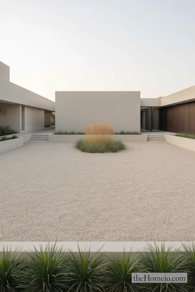 Modern design loves empty space. An open stretch of decomposed granite, a large flat paver with nothing around it, a wide expanse of clean mulch these negative spaces give the eye somewhere to rest and make the planted areas read as more intentional and impactful.