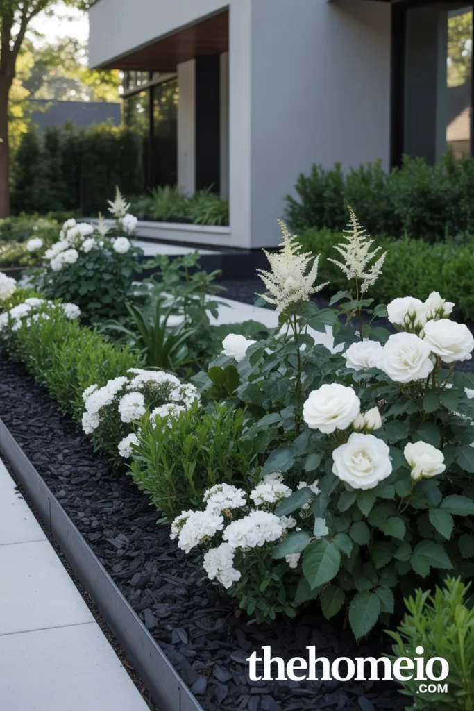 This restraint is what gives modern front yards their sophisticated, pulled-together look. Pick a palette that complements your house exterior and stick to it across every bed. The repetition creates rhythm and the rhythm creates calm which is exactly what modern design is after.