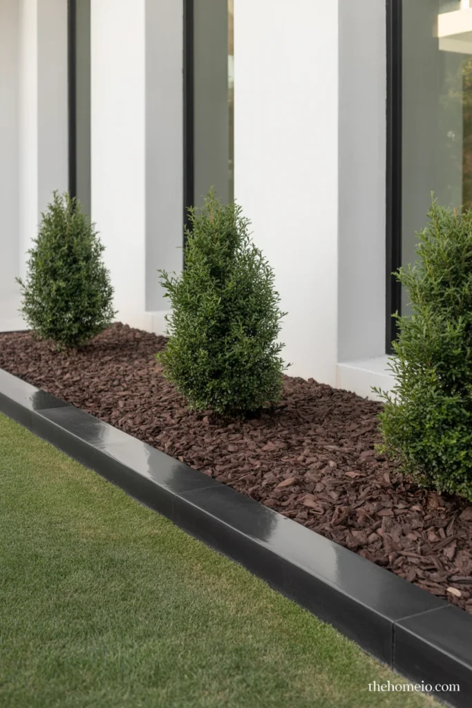 Three perfectly placed dwarf evergreens spaced evenly along the foundation often look far more sophisticated than twelve crowded mixed shrubs. This is one of those simple modern front yard landscaping ideas that requires no special skills just the confidence to use less.