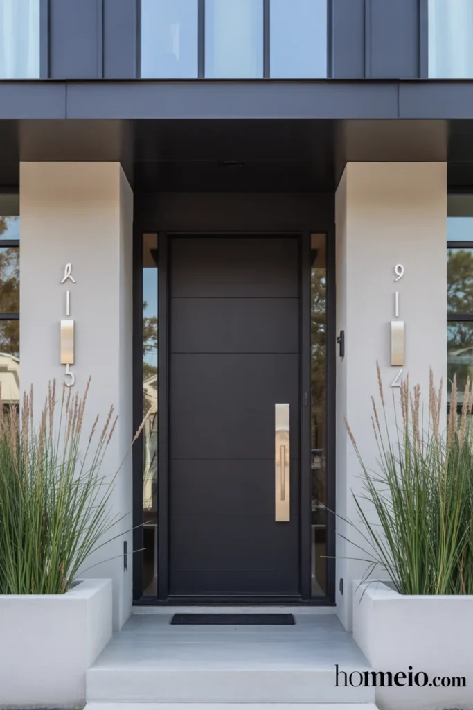 The front door is the punctuation mark of any home’s exterior. In a modern front yard, a bold door in matte black, deep charcoal, bright white, or a saturated jewel tone becomes the focal point that ties the whole design together.