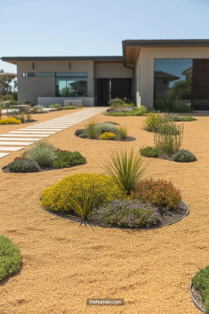 Replace the entire lawn with a base layer of decomposed granite and suddenly the maintenance burden drops to almost zero. No mowing. No watering. No fertilizing. Add planting islands throughout the DG surface filled with ornamental grasses, native shrubs, and drought-tolerant perennials to keep the yard feeling alive and planted rather than bare.
